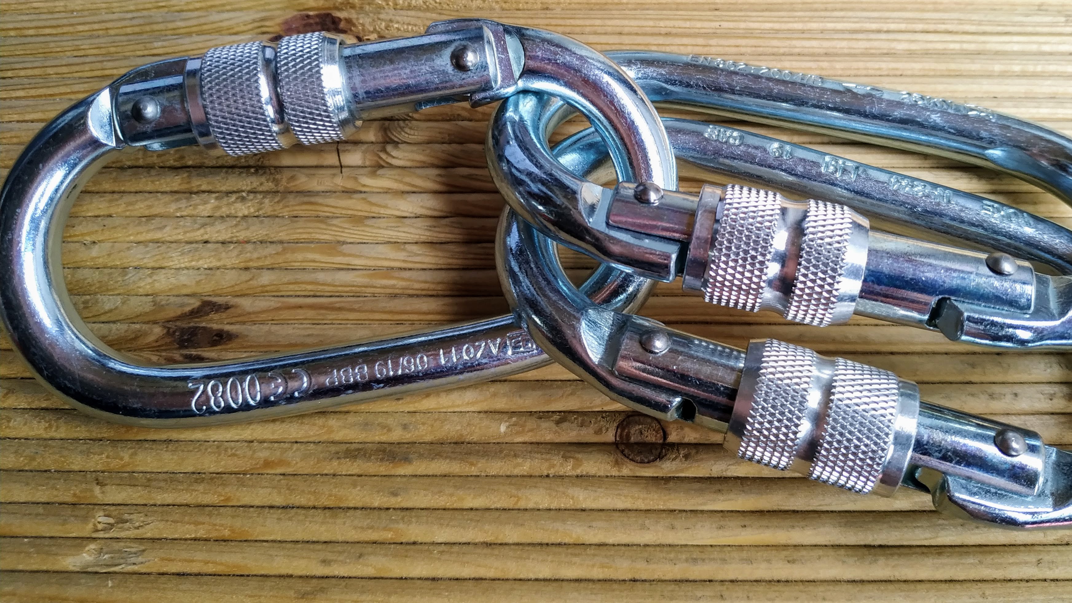 Стальной карабин овальной формы для соединения компонентов страховочной системы.