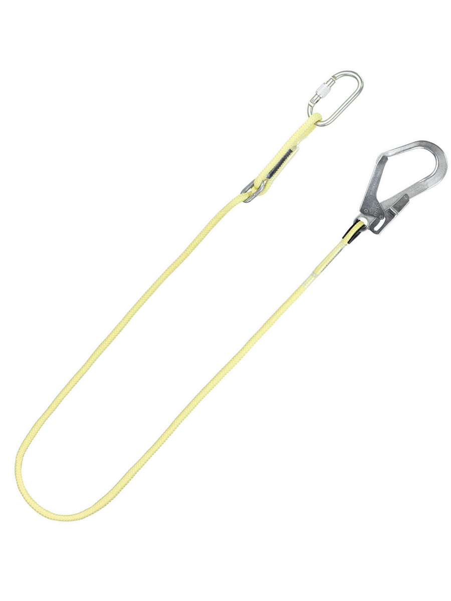 - Строп изготовлен из арамидного шнура. На одном конце стропа установлен карабин класса В, на другом - карабин класса А. Петля стропа с карабином класса А на конце усилена коушем, изготовленным из ПНД. Концы стропа прошиты арамидной нитью контрастного цвета, а также защищены термоусадочной трубкой из ПВХ.