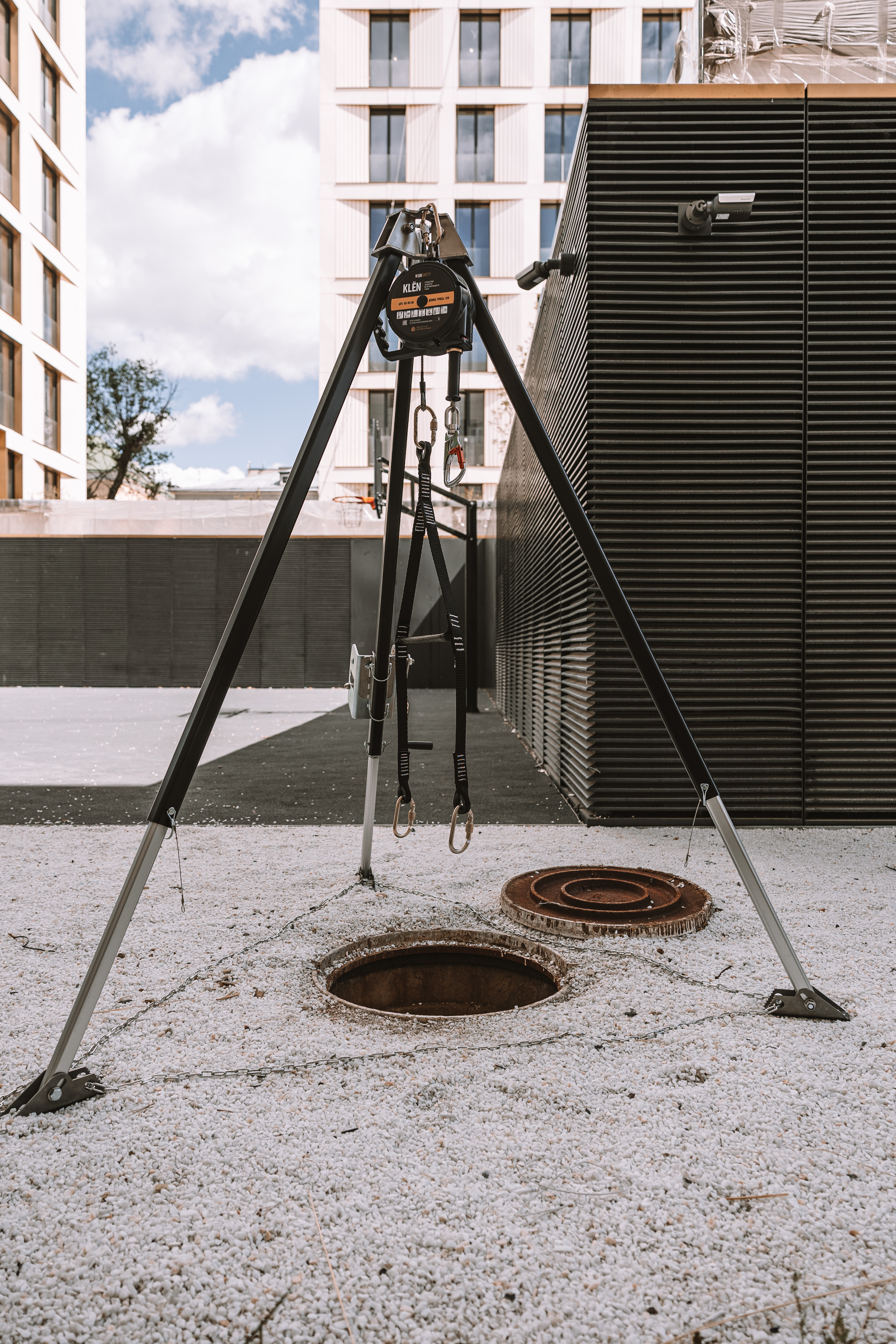 Тренога представляет собой анкерное устройство типа В и является компонентом страховочной системы обеспечения безопасности работы на высоте, а также компонентом системы спасения и эвакуации при использовании совместно со спасательными подъёмными устройствами – лебедками. Предназначена для работы пользователей в ограниченном пространстве (емкости, цистерны, колодцы, бункеры, резервуары, скважины и пр.).