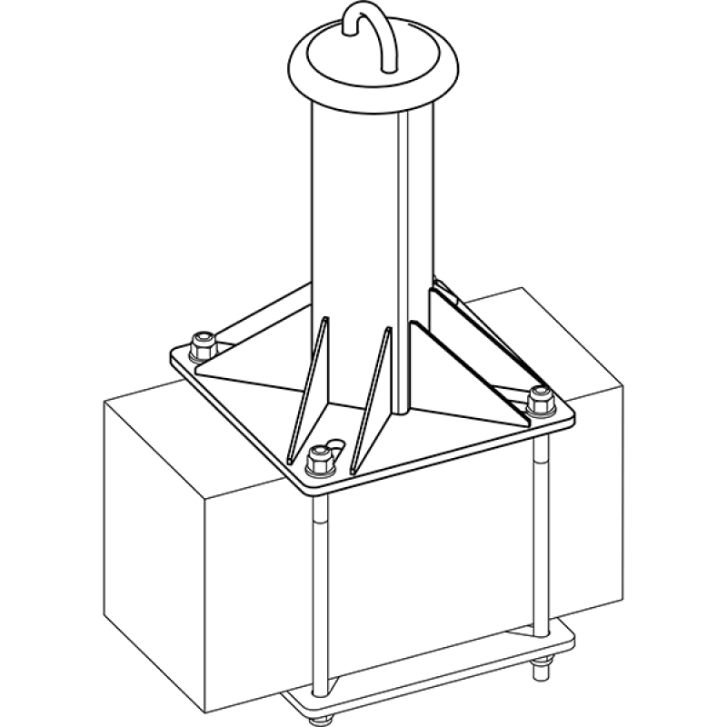 Монтируется анкерный столбик к постоянной конструкции при помощи 4-х крепёжных шпилек М12 к дополнительной крепёжной плите с пазами под анкерный пост-столбик. Комплект крепежа и крепёжная плита в комплект поставки не входят и приобретаются отдельно.