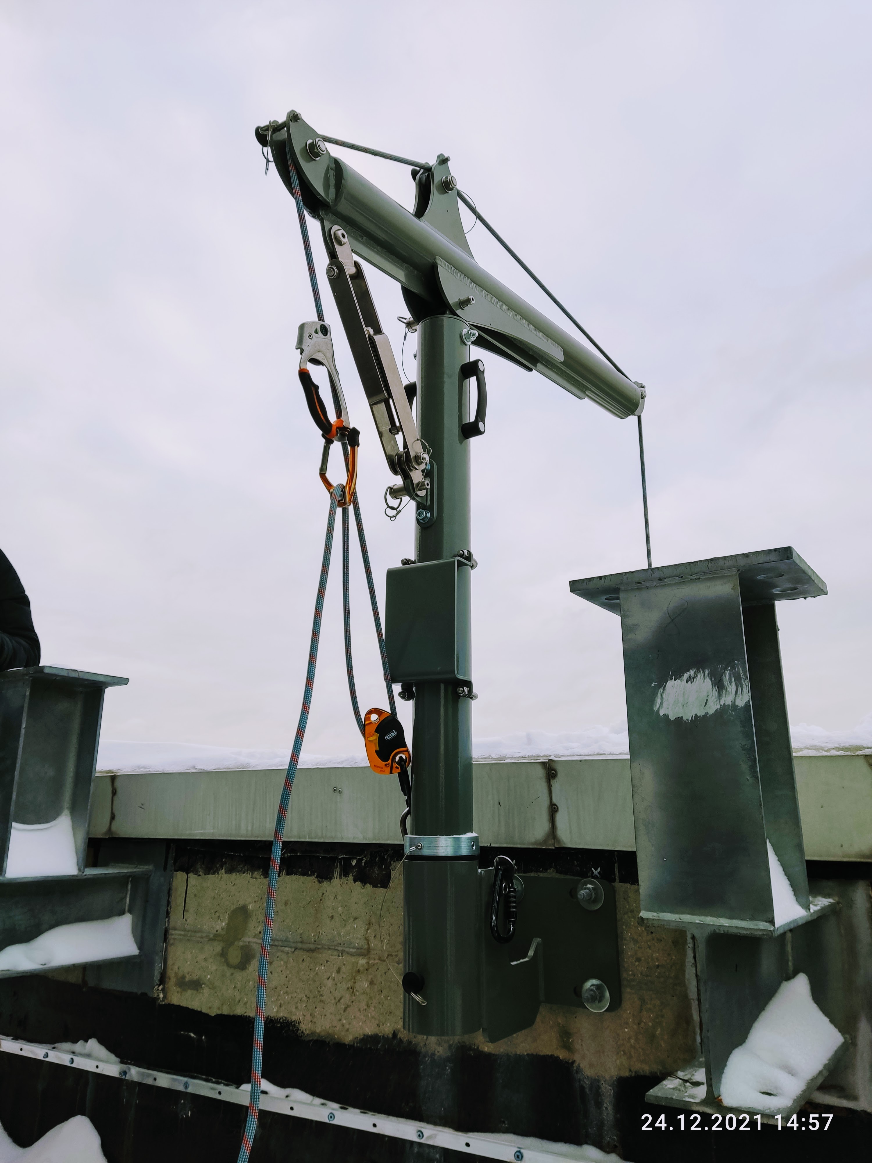 Переносное анкерное устройство в виде Г-образной консоли для организации страховочной, позиционирующей системы. Предназначено для организации систем канатного доступа, страховочных систем для работы в замкнутых пространствах, страховочных систем на вертикальных участках доступа, систем спасения и эвакуации.