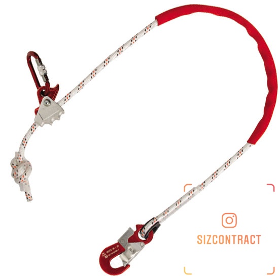 Строп антистатичный двойной с амортизатором «Т11у» позволяет работнику позиционироваться в рабочем положении. Длина стропа регулируется перемещением зажима для регулировки по канату.