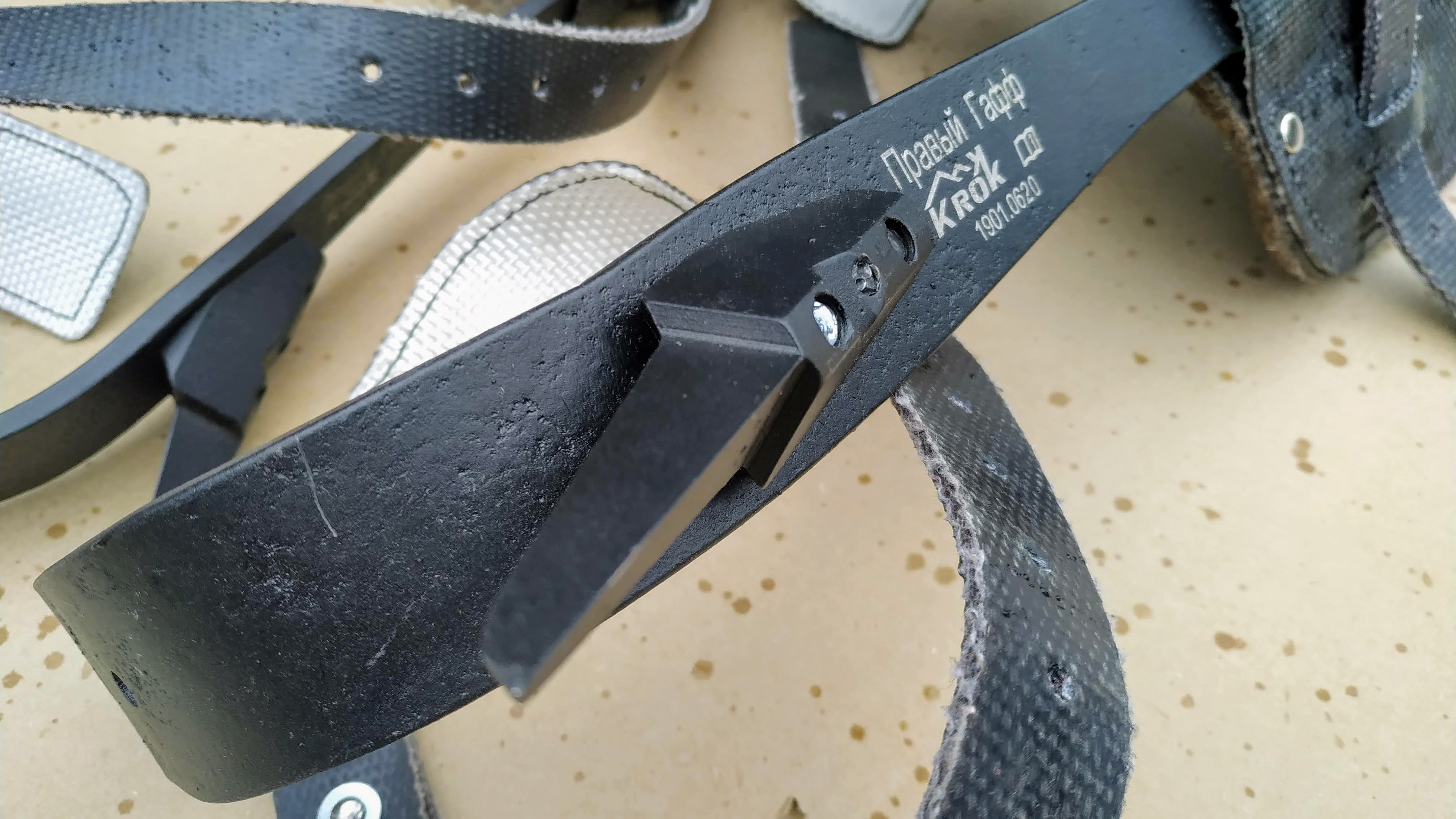 Гаффы КРОКолазы могут комплектоваться различными «падами» — охватами для голени и фиксирующими ремнями: из нейлона или кожи. По заказу возможно изготовление шипов-шпор для Гаффов КРОКолазов с иной длиной шпоры.