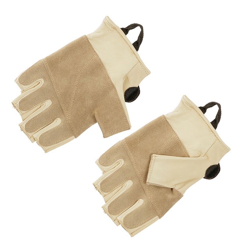 Перчатки с обрезанными пальцами для работы с верёвкой из мягкой и прочной кожи с замшевыми усилениями на ладони.