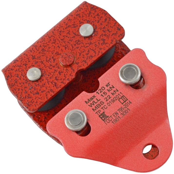 - Оборудована стальными роликами для использования с канатами от 9,5 до 12,0 мм и муфтами консолей обхода диаметром до 20 мм.