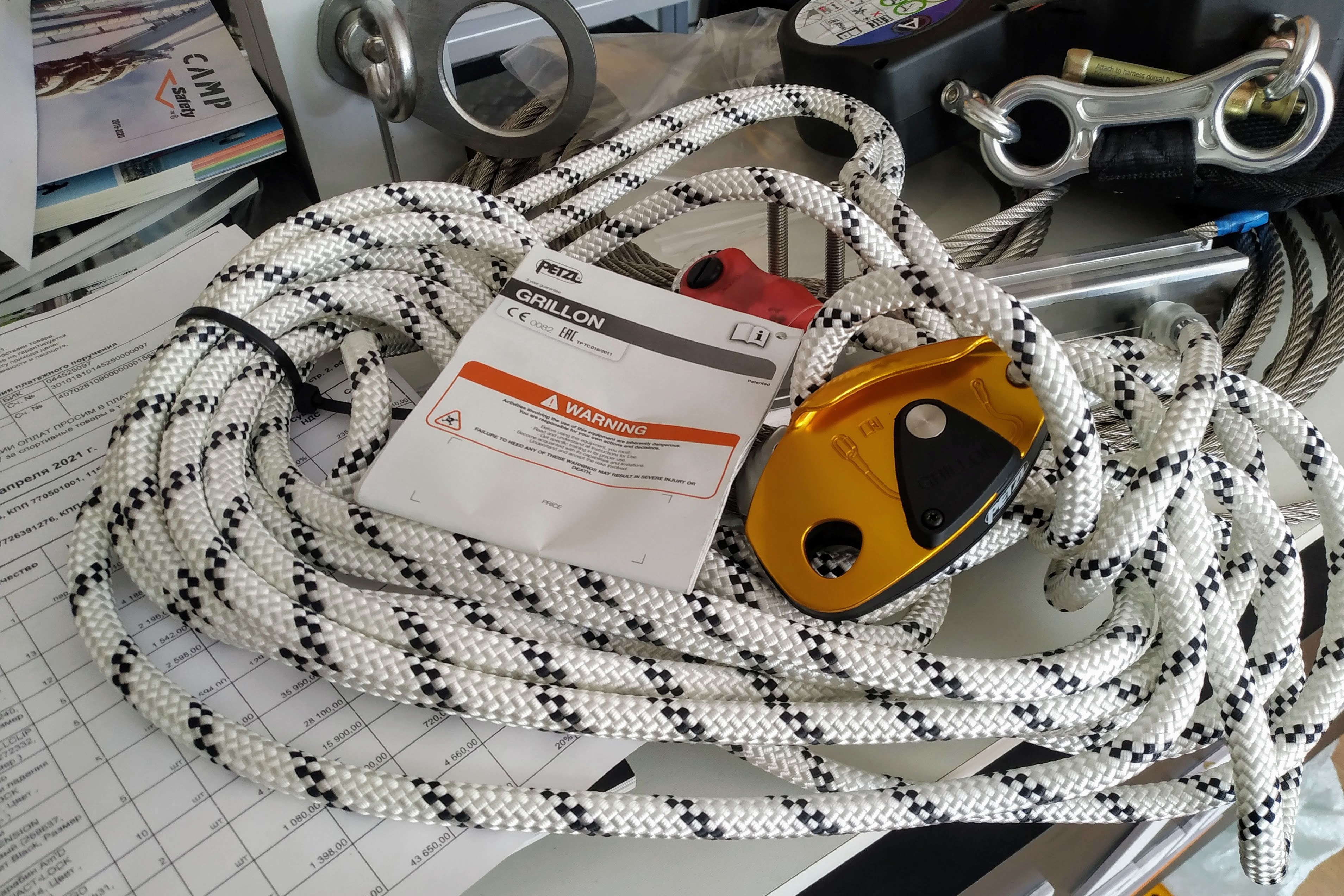 - Самоблокирующееся устройство позволяет легко регулировать длину и натяжение перил между двумя анкерными точками.