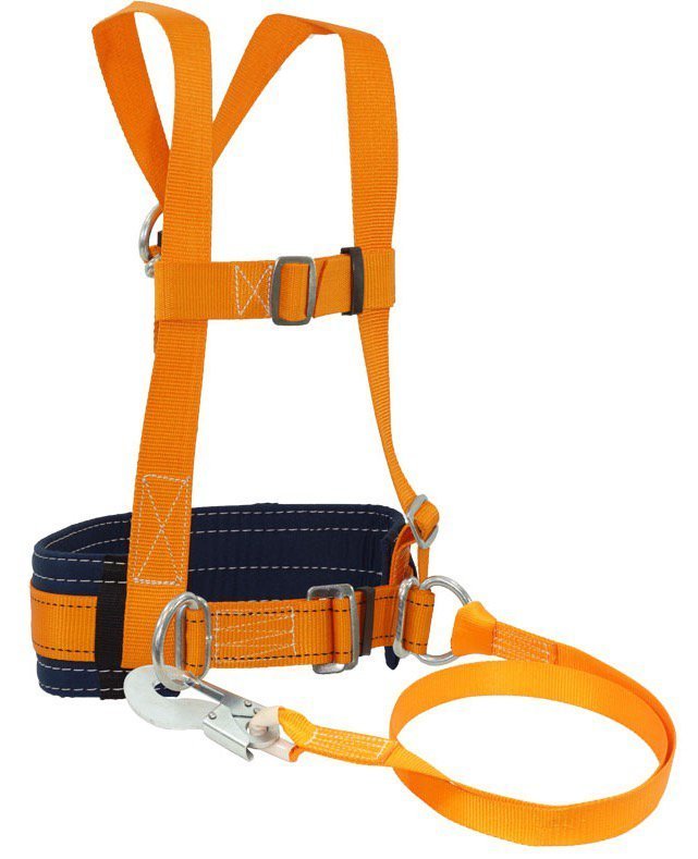Удерживающая привязь со стропом из полиамидной ленты, с наплечными лямками, ремень, кушак, два элемента крепления для рабочего позиционирования.