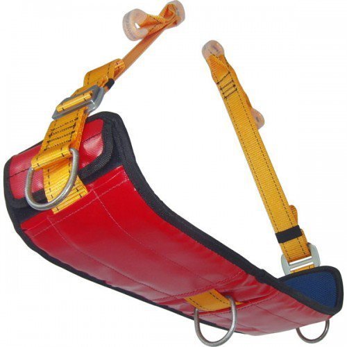 Каркас сиденья «ПРОМ ПОДИУМ» изготавливается из многослойного стеклопластика в двух типоразмерах — шириной 120 и 240 мм. Загнутые вверх края подиума позволяют подвесочным стропам не передавливать бёдра сидящего промальпиниста. А благодаря расходящимся в стороны краям подиума можно сидящему для удобства разводить в стороны ноги.