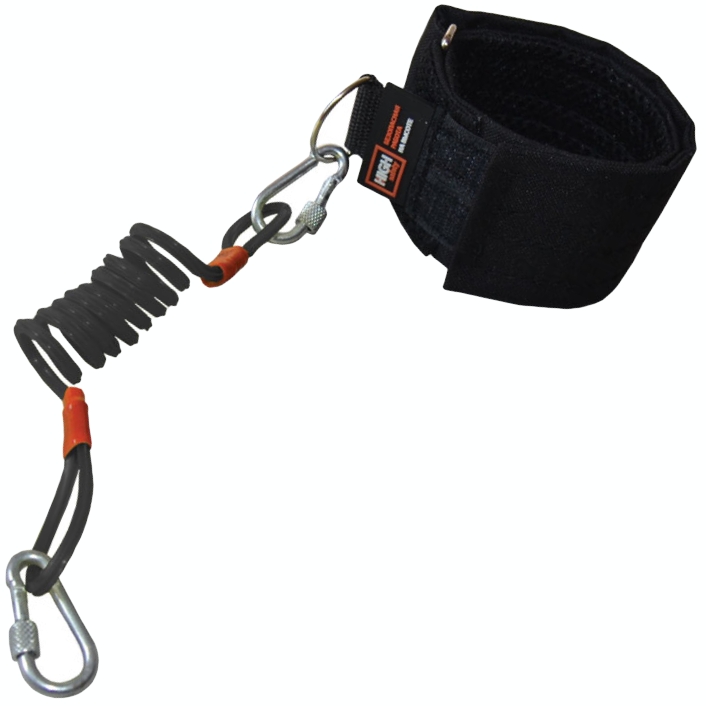Строп для страховки инструмента в виде манжета. Пружина с карабином: 25 см. Максимальное удлинение: до 40 см.