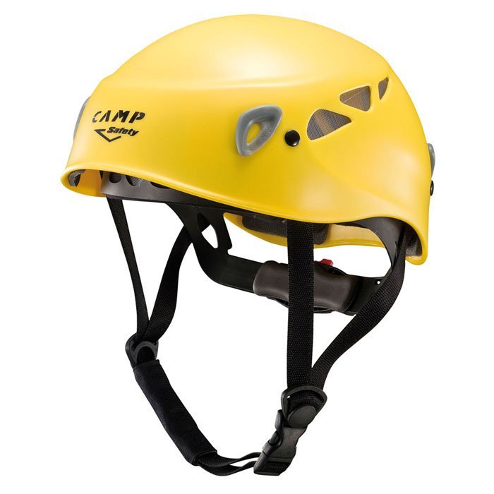 Прочная защитная индустриальная каска из АБС пластика с легкой в использовании раздвижной системой регулировки, вентиляционные отверстия с защитной сеткой выстроенны в линию, а так же имеются четыре клипсы для крепления фонаря.