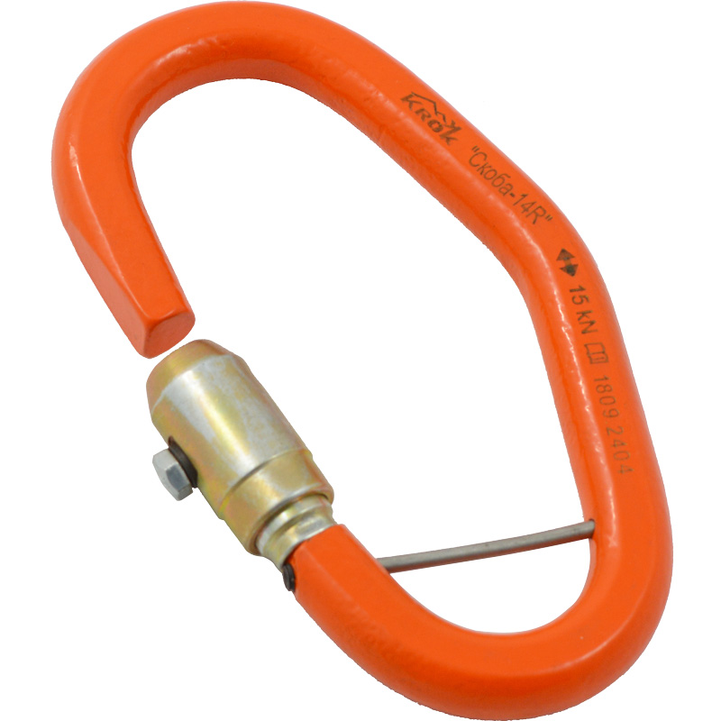 Внимание! Ввиду разомкнутости контура звена, использование соединительного звена «СКОБА-14R» допускается только при самостраховке с возможным фактором падения менее единицы.Для обеспечения плавности рывка при подсоединении соединительного звена «СКОБА-14R» к лямочному поясу страховочной привязи следует использовать самостраховочный ус с компенсатором рывка.