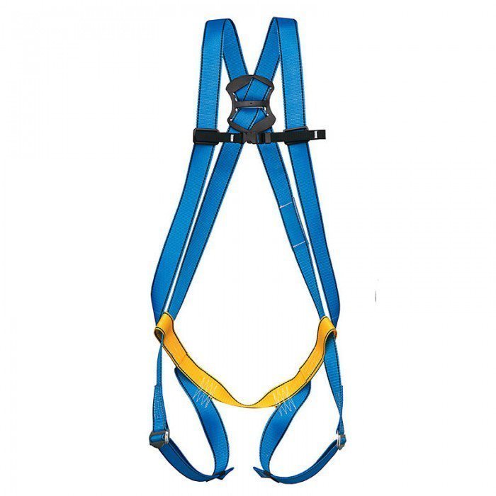 Привязь с набедренными и наплечными лямками из полиамидной ленты шириной 44 мм с общей регулировкой ремней на бедрах и плечах. Точка крепления находится на спине в форме D-образного стального кольца.