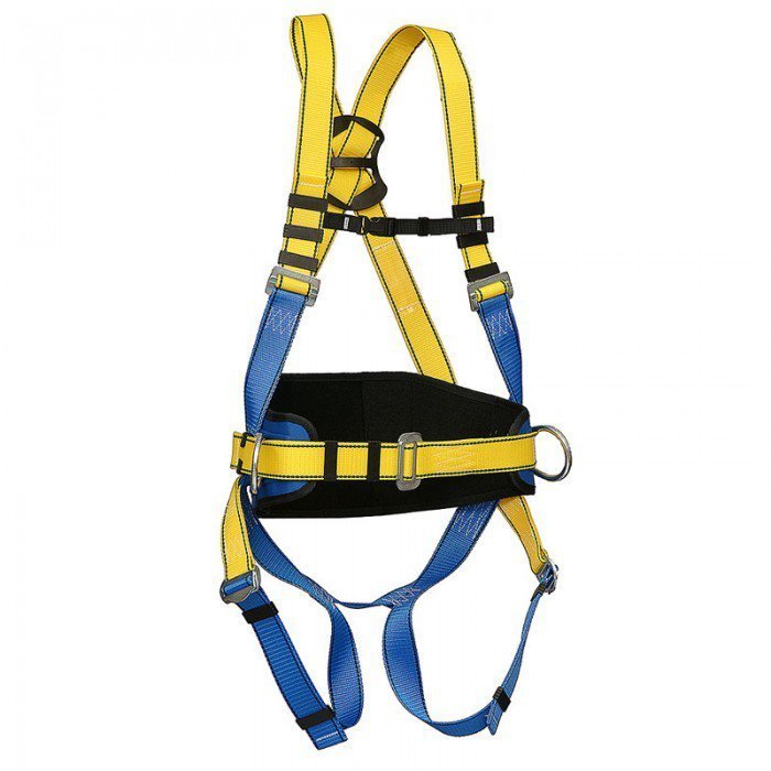 Привязь с набедренными и наплечными лямками из полиамидной ленты шириной 45 мм со спинной точкой крепления и широким позиционирующим поясом (20 см).