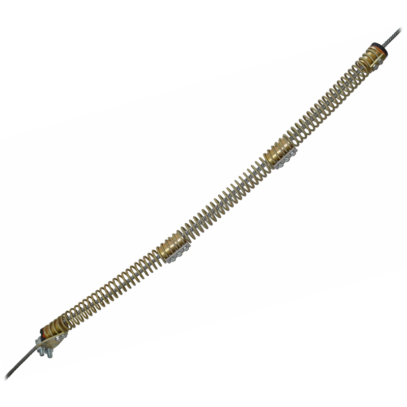 Проставки, заглушки и пружины устанавливаются на трос до его фиксации за конечную анкерную точку.
