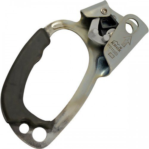- Жумар «Крок» представляет собой зажим защемляющего типа с подвижным подпружиненным игольчатым кулачком-прижимом и рукоятью для правой руки.