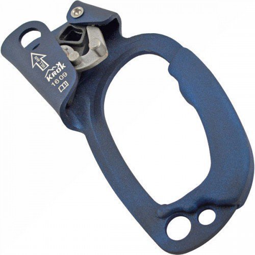 - Жумар «Крок» представляет собой зажим защемляющего типа с подвижным подпружиненным игольчатым кулачком-прижимом и рукоятью для правой руки.