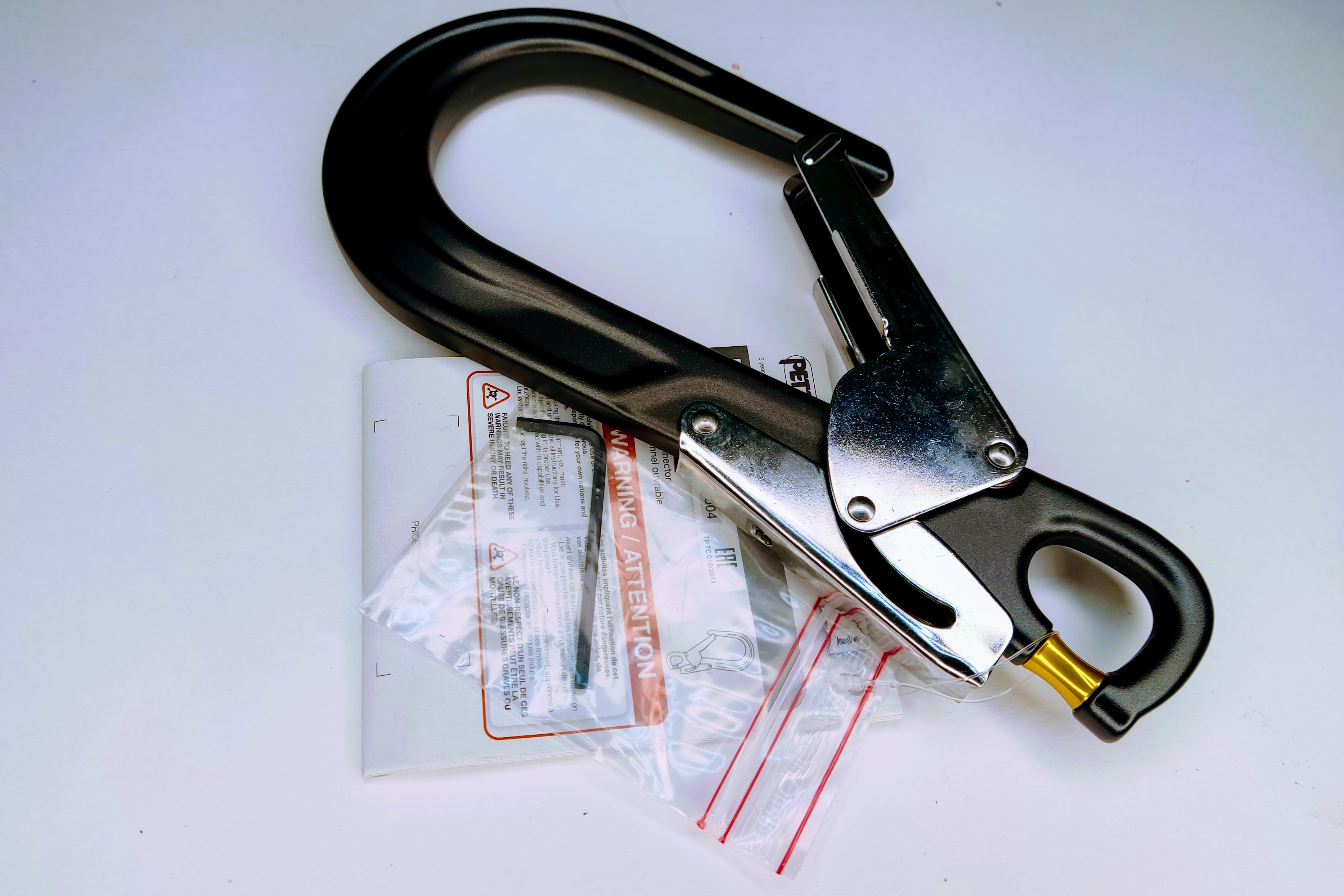 Очень широкое раскрытие позволяет присоединять карабин к металлическим тросам, трубам и другим большим конструкциям. Разъемное присоединительное отверстие позволяет присоединять карабин к любым стропам.