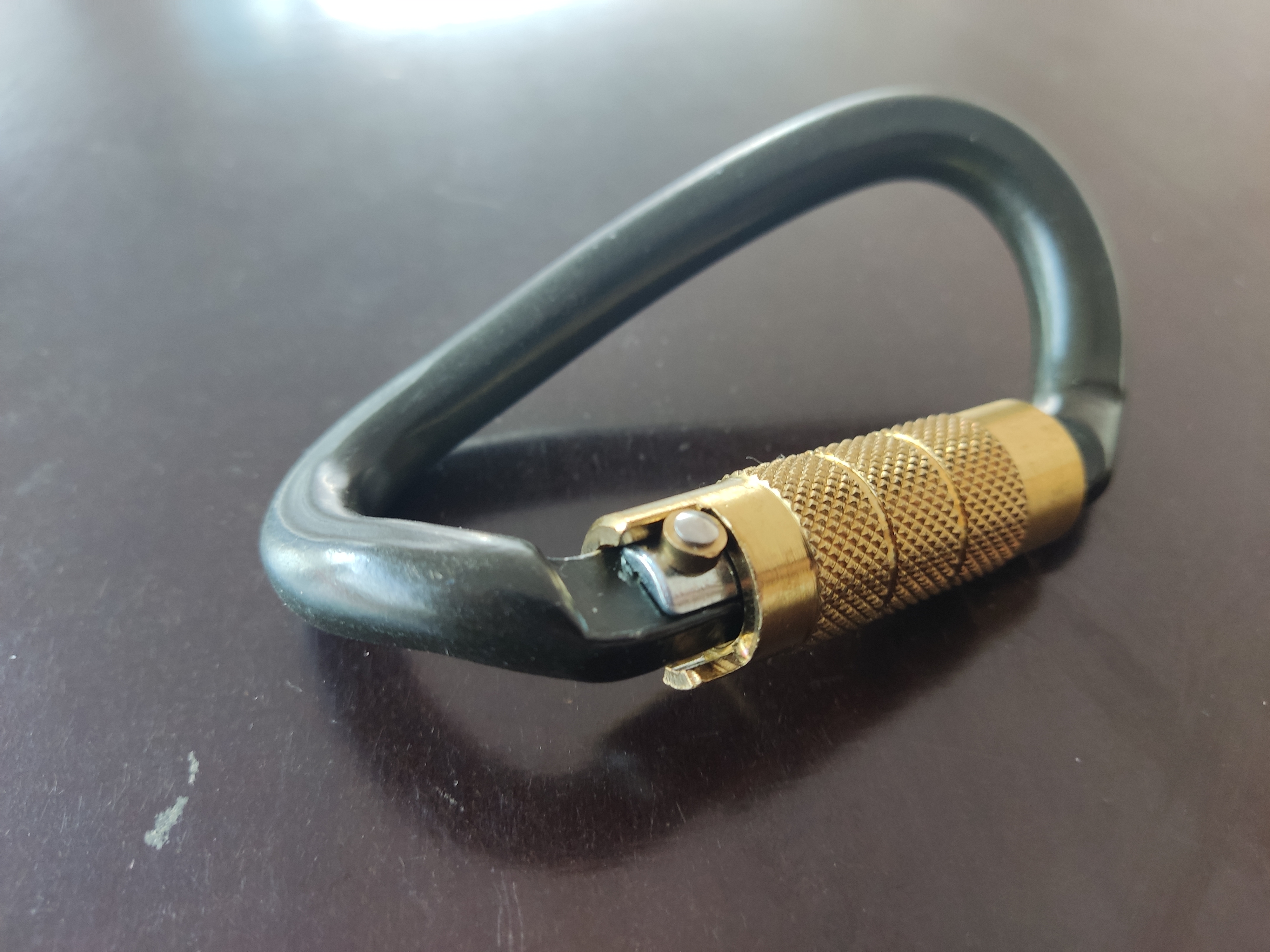 Специальный спиралевидный карабин из углеродистой стали с системой блокировки типа twistlock.