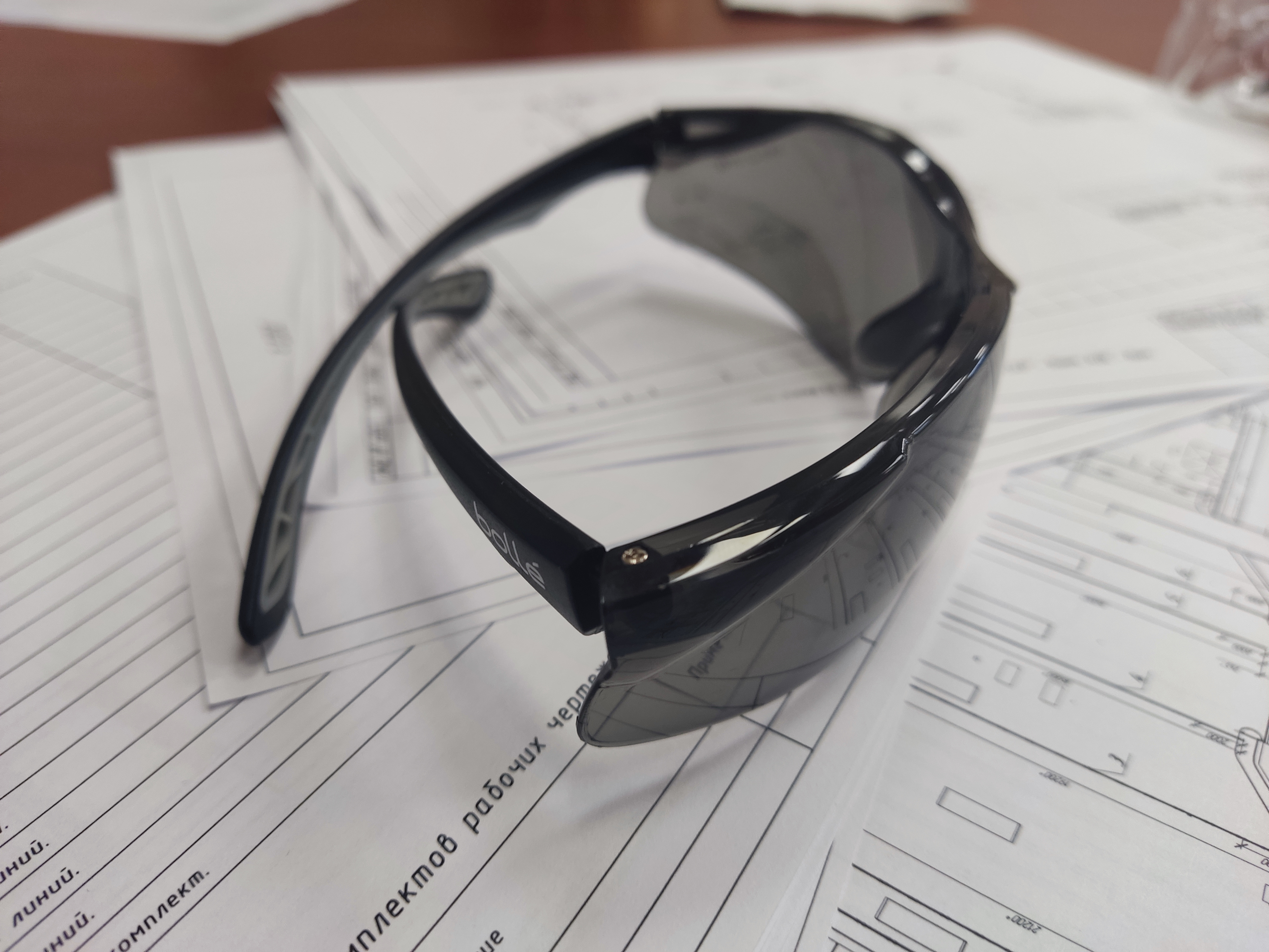 Лёгкие, хорошо прилегающие защитные очки открытого типа. Линзы с антитуманным покрытием. Затемнённые стёкла для защиты от ультрафиолета.