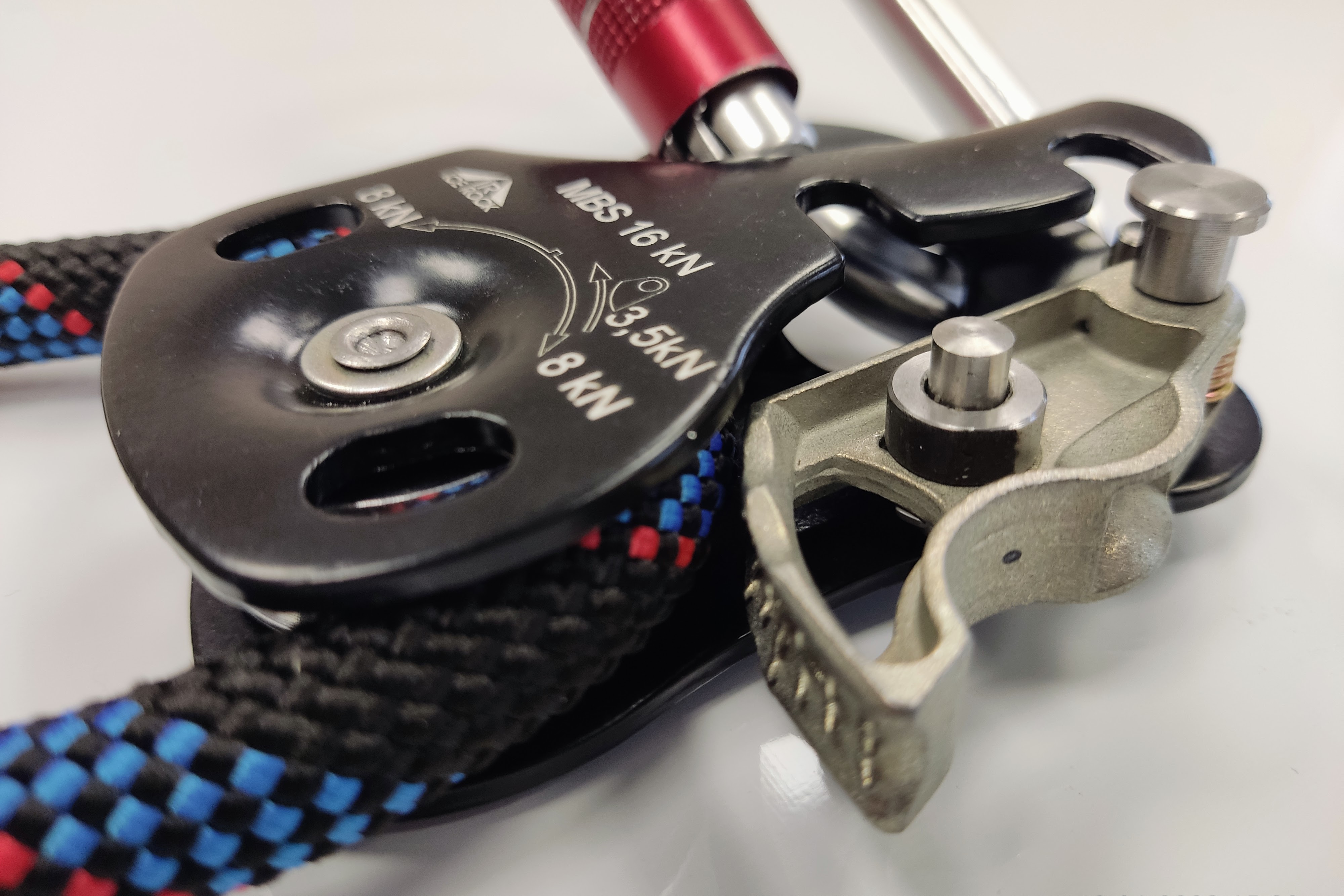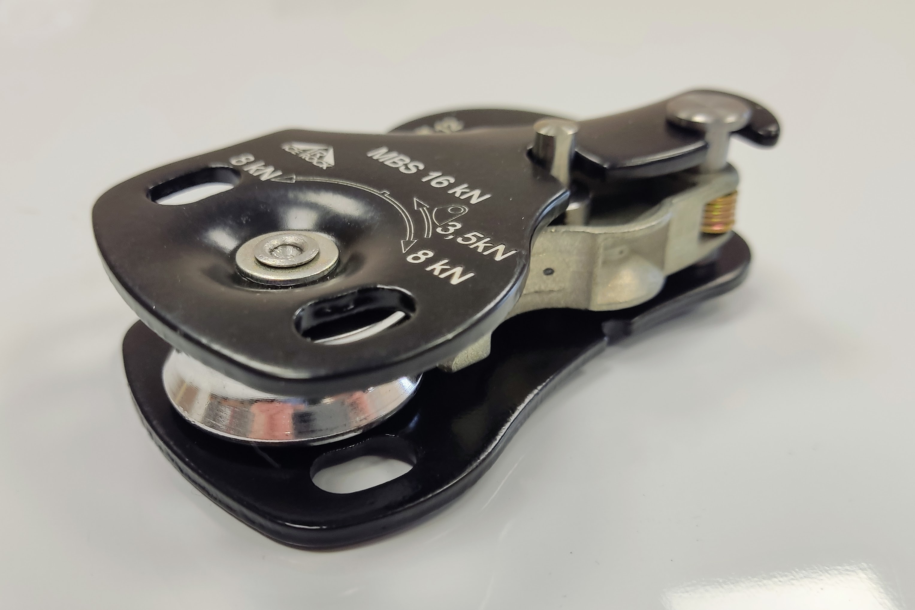Компактный и легкий блок-ролик с зажимом предназначен для подъема тяжелых грузов, людей, и самостраховки.