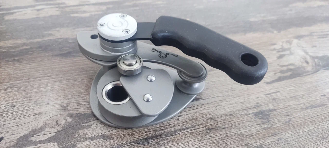 Спусковая верёвка при выходе из устройства не плющится, т.к. форма верхнего направляющего ролика восстанавливает округлость выходящей верёвки.