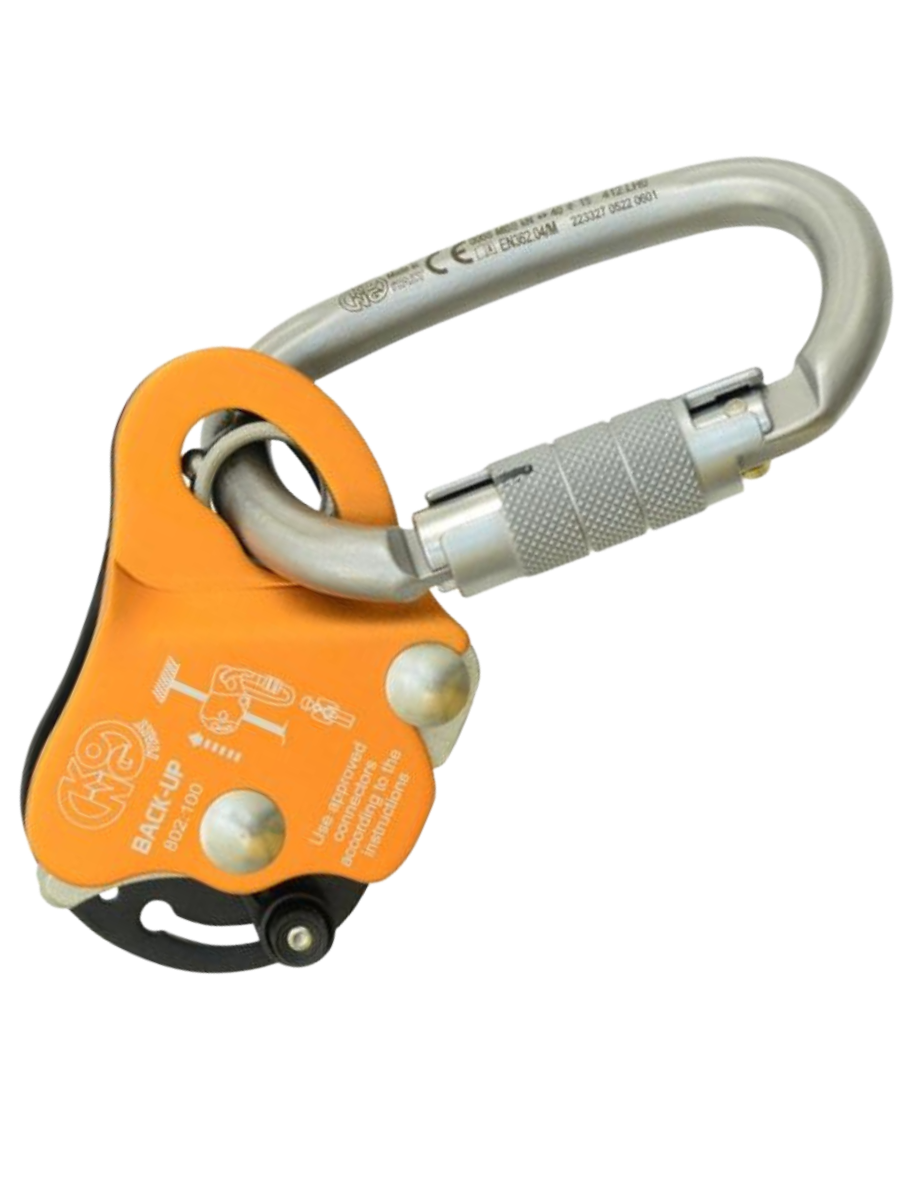 Зажим ползункового типа для установки на анкерную линию или канат с сердечником низкого растяжения. Зажим плавно идет по веревке в двух направлениях (вверх-вниз) или только вверх, в зависимости от выбранного режима. В случае срыва BACK UP сразу же блокируется (схватывает) веревку. Специальное устройство кулачка не травмирует веревку даже при срыве с фактором 2. Продаётся в комплекте со стальным автоматическим карабином.