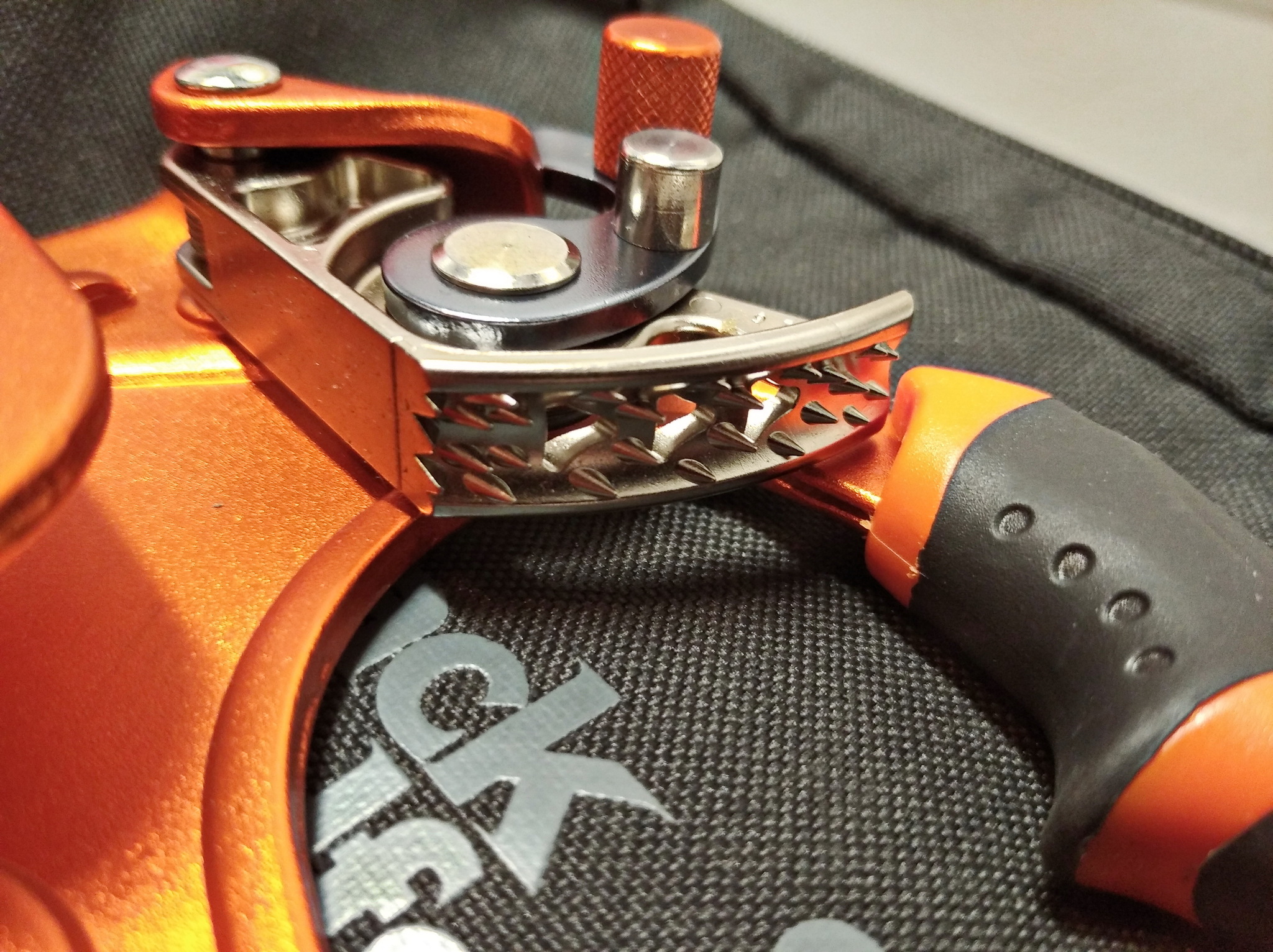 - Стальной кулачок изготовлен из сплава стали для повышения срока службы. Оснащен набором зубцов, которые защищают веревку от износа, но эффективны при подъеме по веревке. Он также имеет три прорези для самоочистки для эффективной работы с сложных погодных условиях (грязная веревка, замерзшая и т. д.);