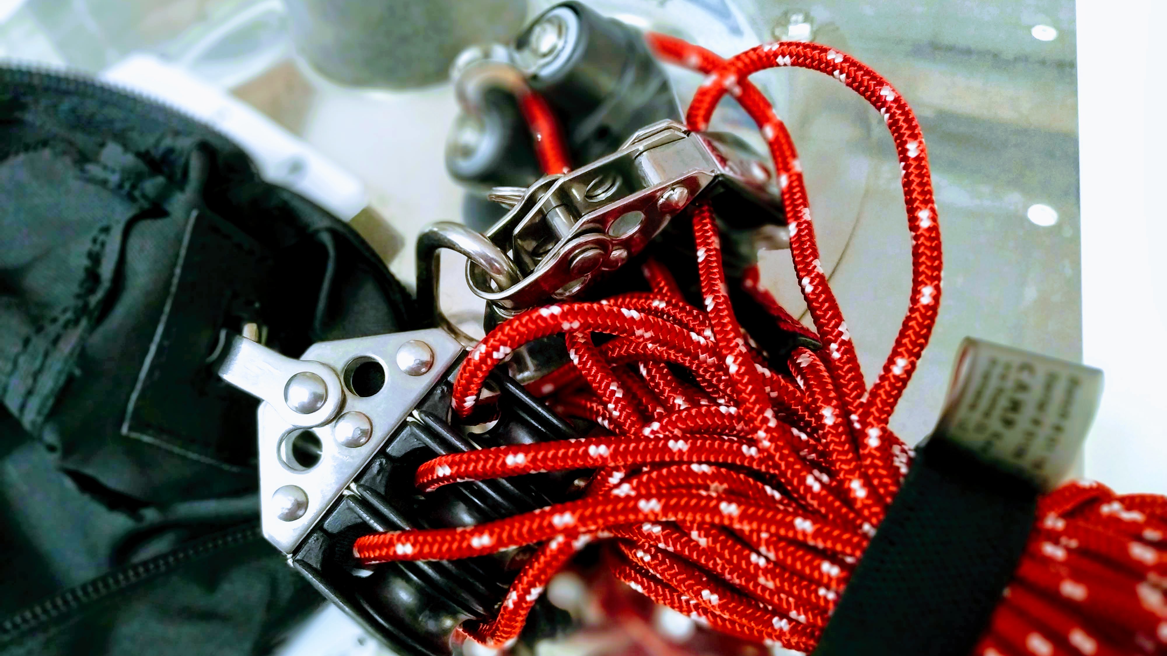 Портативный аварийный полиспаст, для спасательных работ во время применения системы канатного доступа.
